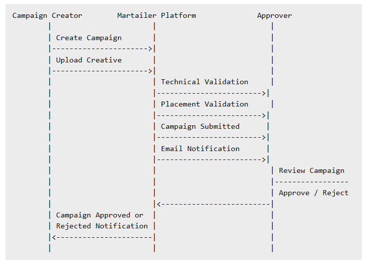 Email Notification A retail account administrator or dedicated approver receives an automated email notification containing campaign details and a direct link to the campaign approval page within the Martailer platform.